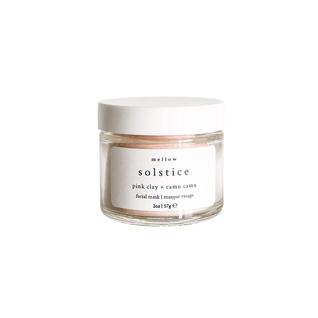 Pink clay gently exfoliates + promotes cell renewal, leaving you with refreshed looking skin. Camu camu powder is packed with Vitamin C and antioxidants to protect skin and brighten your overall complexion. Perfect for all skin types. Made by Mellow Bath + Body from Newmarket, ON.