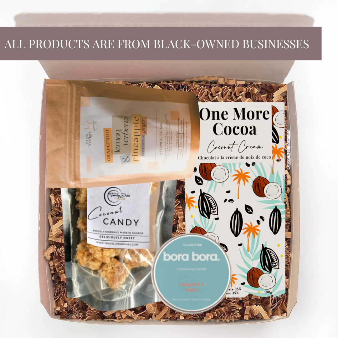 This gift box is designed to celebrate and support Black-Founded Canadian businesses all year long. $5 from each Tropical Breeze gift box purchased will be donated to Black Health Alliance, a charity working to improve the health and well-being of Black communities within Canada.